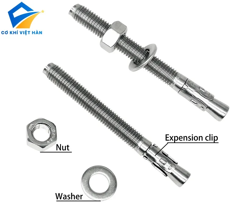 - Cấu tạo gồm: bu lông + thân nở 3 cánh + long đen + đai ốc
