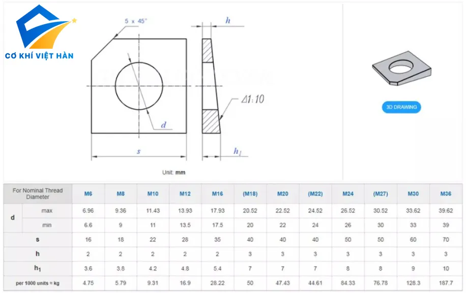 - DIN 434 – Long đen vát dùng cho thép chữ I