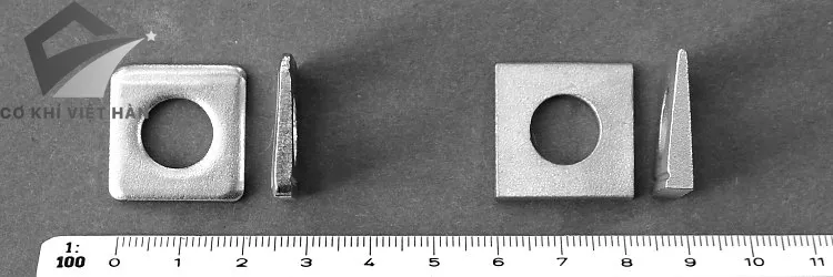 Long đen vát là vòng đệm có một mặt phẳng và một mặt được gia công nghiêng theo góc nhất định (3° – 8°), dùng để bù sai lệch góc giữa bu lông và bề mặt lắp ghép.