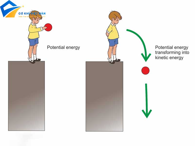Khi một vật được nâng lên hoặc di chuyển đến một vị trí cao hơn, năng lượng phải được cung cấp cho vật đó. Năng lượng này sẽ được lưu trữ dưới dạng thế năng. Khi vật được thả rơi hoặc di chuyển xuống vị trí thấp hơn, thế năng sẽ được chuyển đổi thành năng lượng động học, làm cho vật chuyển động.