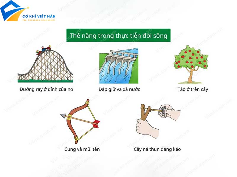 • Các cần cẩu, thủy điện, và các hệ thống nâng hạ vận dụng nguyên lý thế năng trọng trường.