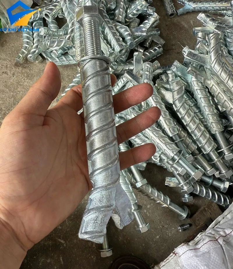 Khi thi công, lực siết sẽ kéo phần chẻ này nở ra, ép chặt vào thành bê tông – giúp bu lông bám chắc và cố định cực kỳ vững.